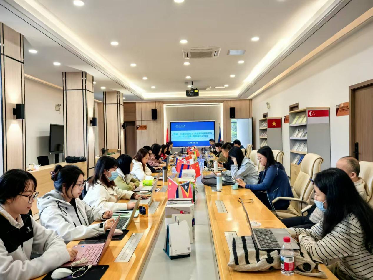 11月3日上午,我院在中国—东盟研究院国别研究楼三楼大厅召开2025年11月第1周智库科研周会,全体智库科研人员、舆情研究助理以及博士研究生参会。