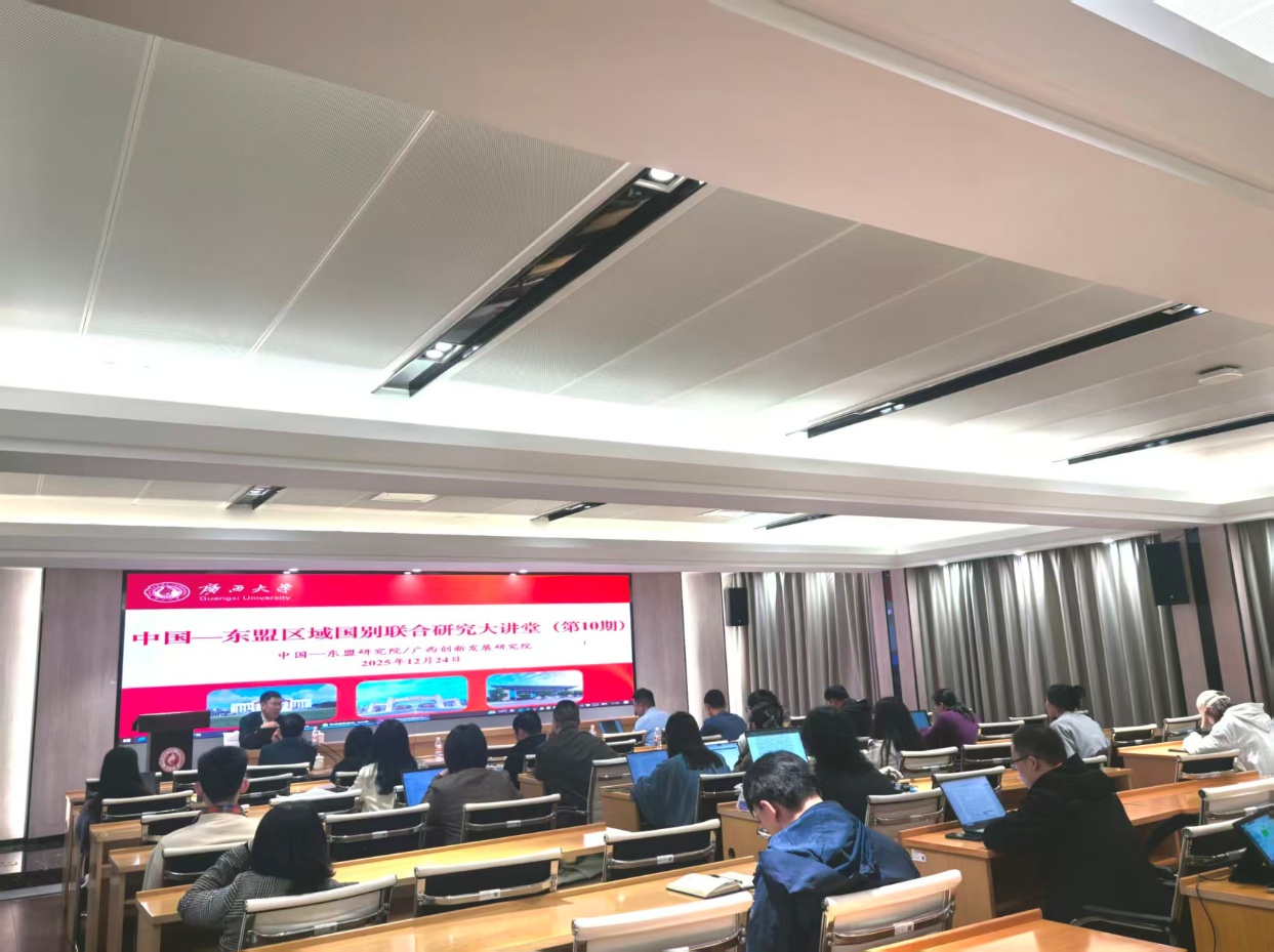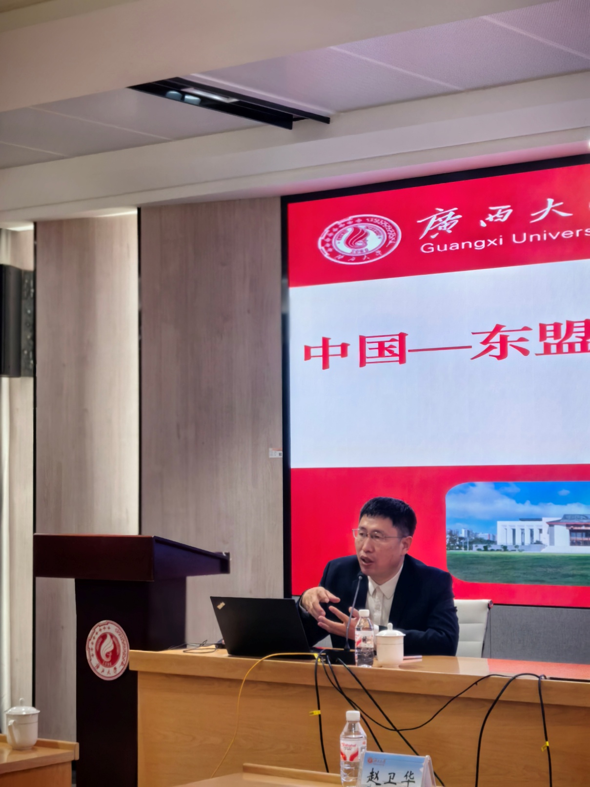 12月24日,我院成功举办第10期中国—东盟区域国别联合研究大讲堂,特邀复旦大学中国周边研究中心赵卫华教授作题为“新的国际背景下越南政局的走势与中越命运共同体前景”的学术报告。本期大讲堂由梁运文执行院长主持,我院全体研究人员以及学校师生代表参加。