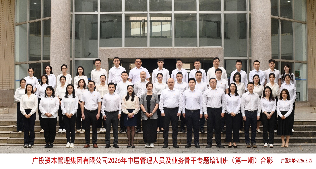 2026年3月28日至3月31日,由我院承办的广投资本管理集团有限公司2026年中层管理人员及业务骨干专题培训班(第一期)圆满完成。来自广投资本管理集团有限公司的优秀中层管理人员及业务骨干参加了本次为期四天的专业培训。